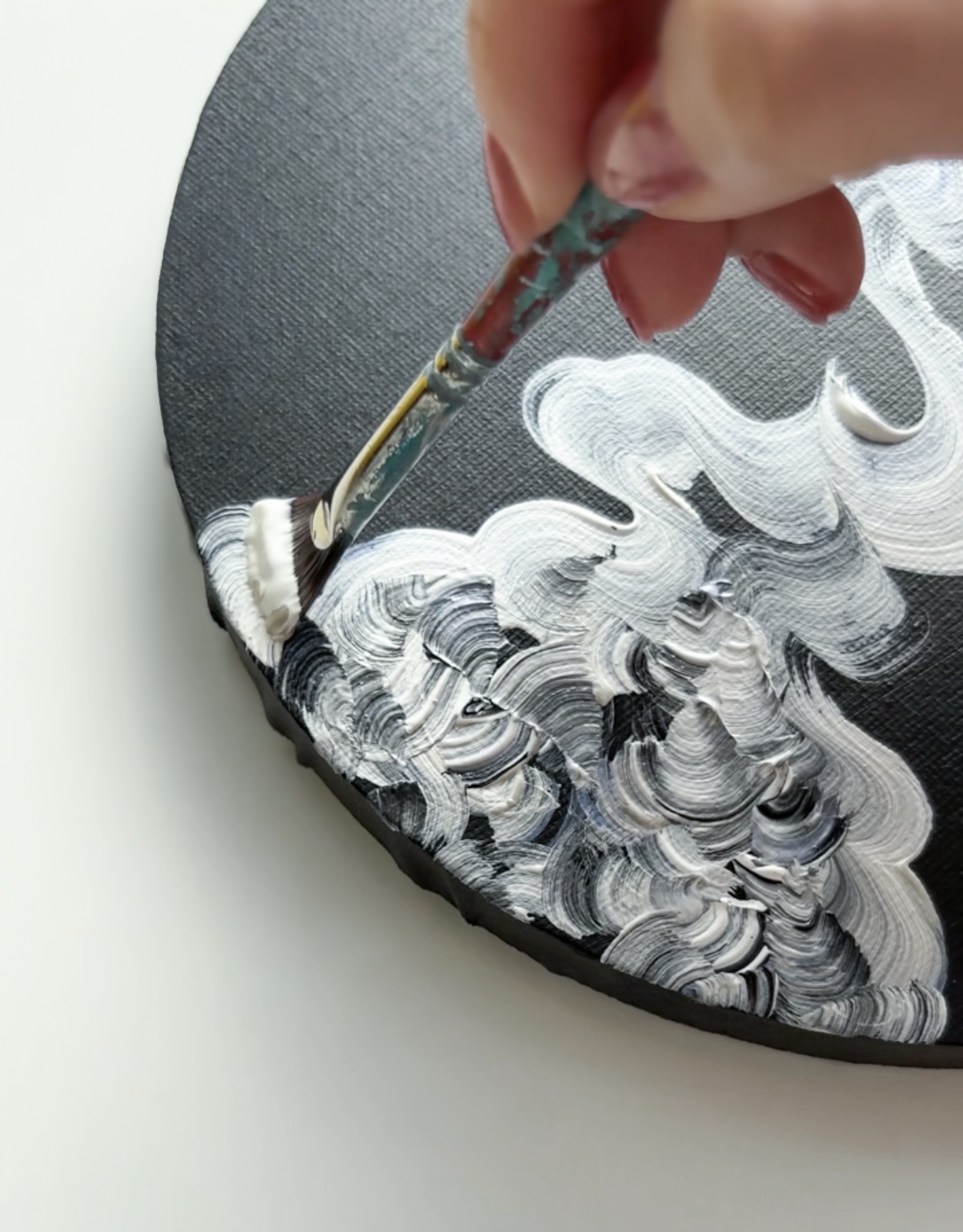 思考によって制限される意図や操作を超え、溢れ出す無意識領域からの導きに身を委ねながら描かれる作品群は、アーティスト個人の内的変容とともに進化し続ける生きた概念でもあり、また同時に、生死を超えて普遍的な魂の深層と共鳴し合うための媒体ともなる。